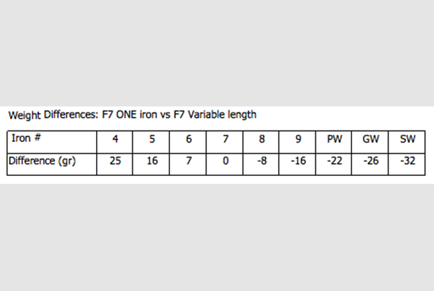 In testing cobra found most players produce similar gaps with f7 one length irons and variable length f7 irons.